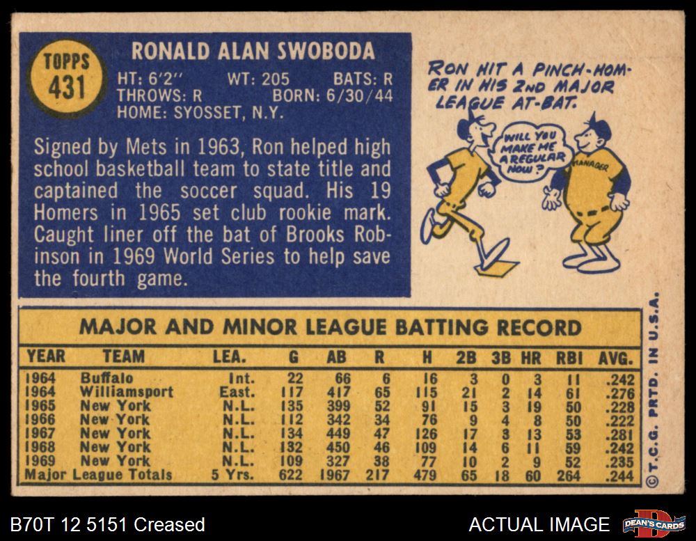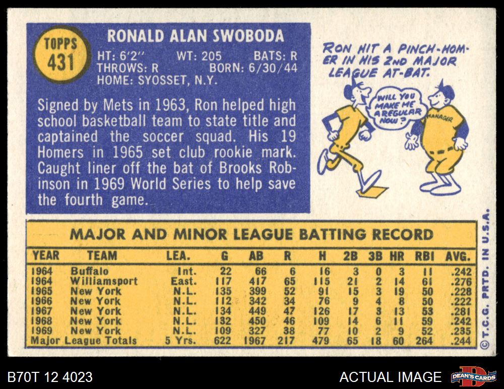 1970 Topps #431 Ron Swoboda
