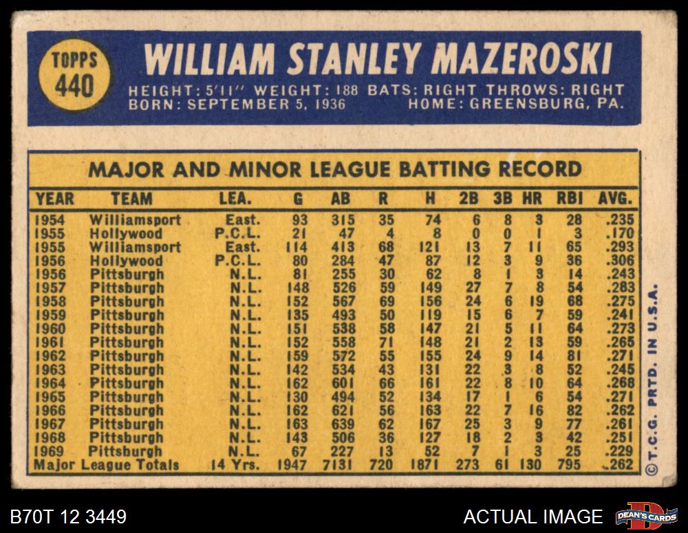 1970 Topps #440 Bill Mazeroski 2 - GOOD