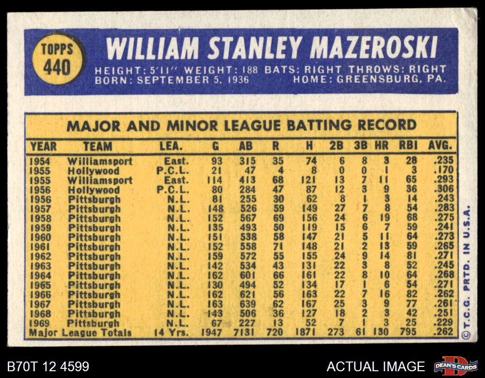 1970 Topps #440 Bill Mazeroski 3 - VG