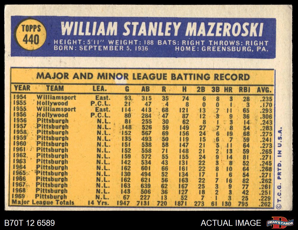 1970 Topps #440 Bill Mazeroski 4 - VG/EX