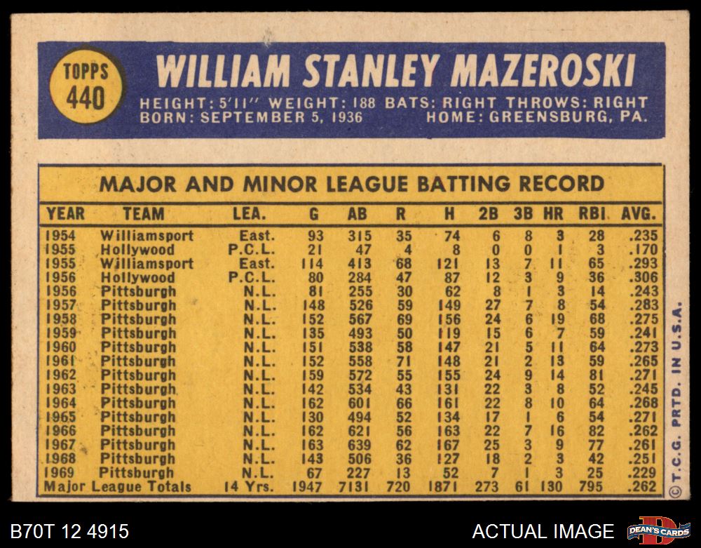1970 Topps #440 Bill Mazeroski 5 - EX