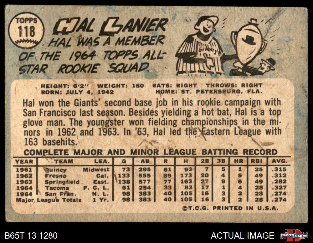 1965 Topps #118 Hal Lanier AUTHENTIC