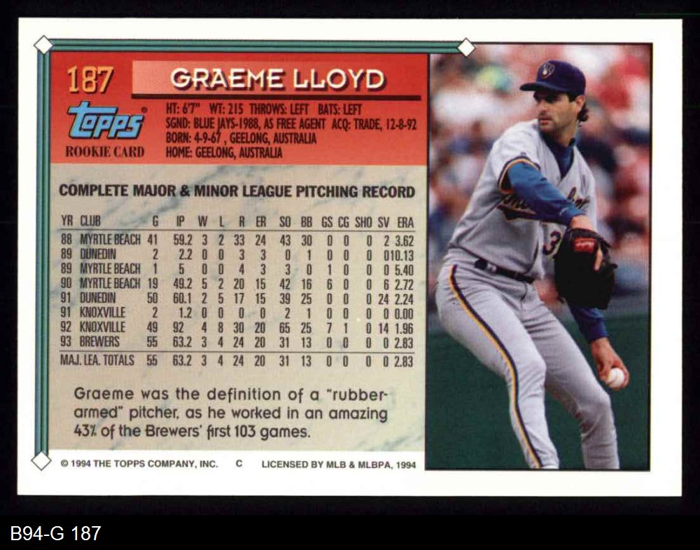 1994 Topps #187 Graeme Lloyd