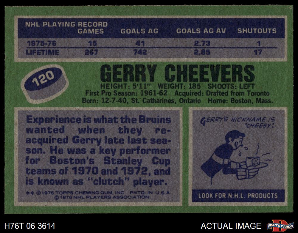 1976 Topps #120 Gerry Cheevers 5 - EX