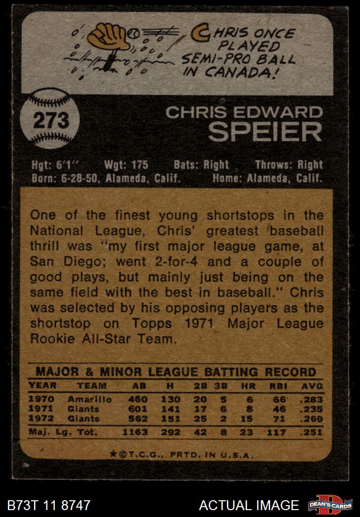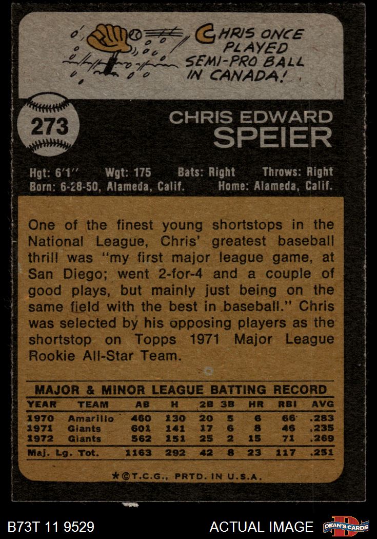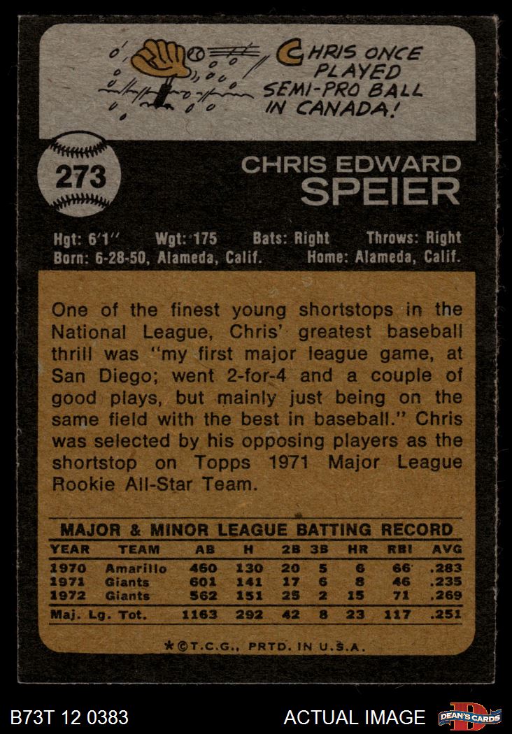 1973 Topps #273 Chris Speier