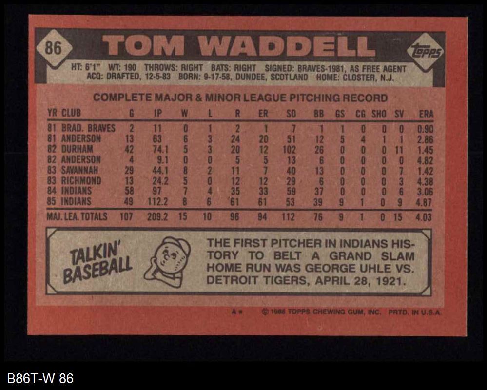 1986 Topps Baseball Cards (6,194 available)1986 Topps Indians (251 available)
