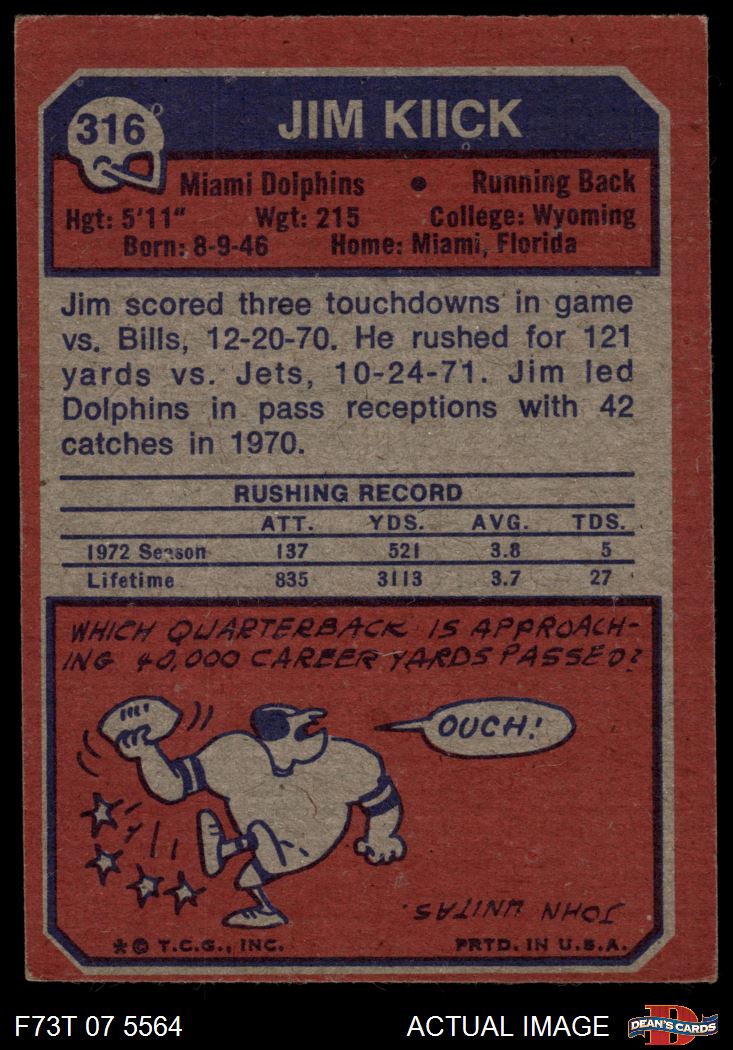 1973 Topps #316 Jim Kiick 4 - VG/EX