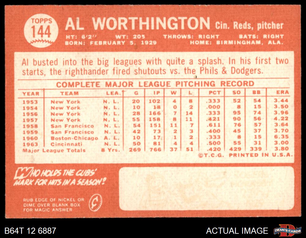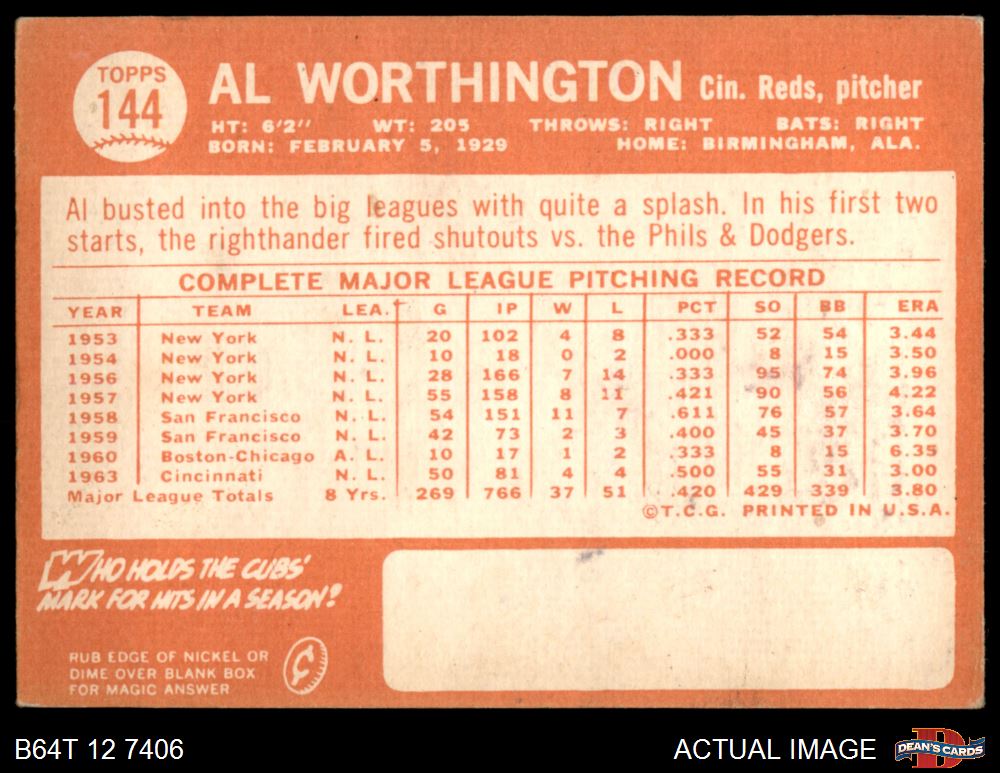 1964 Topps #144 Al Worthington