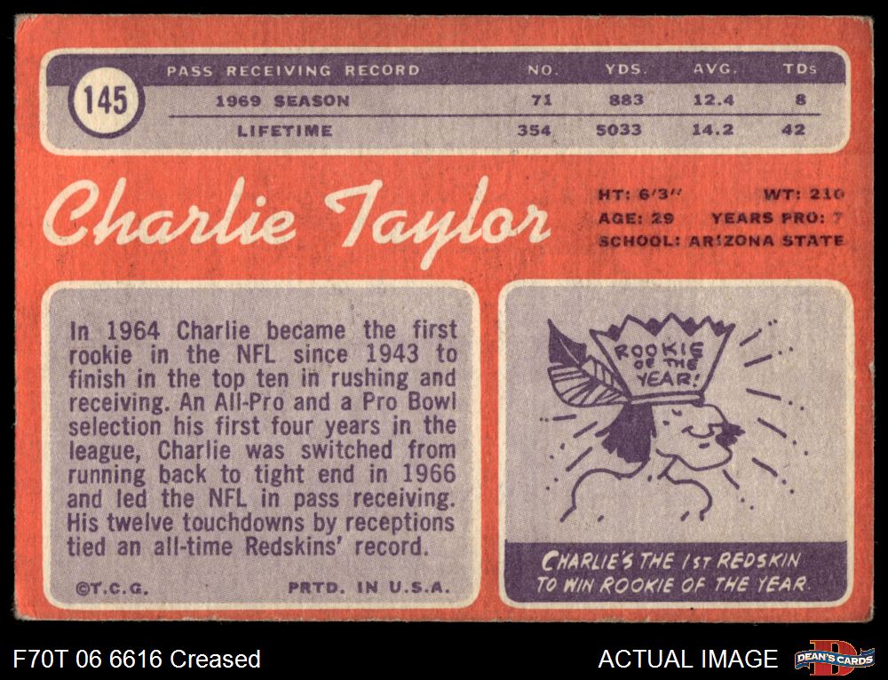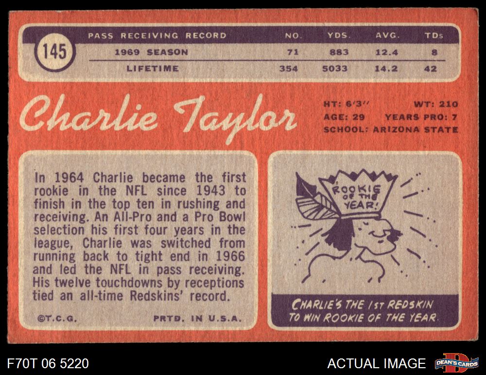 1970 Topps #145 Charlie Taylor 2 - GOOD