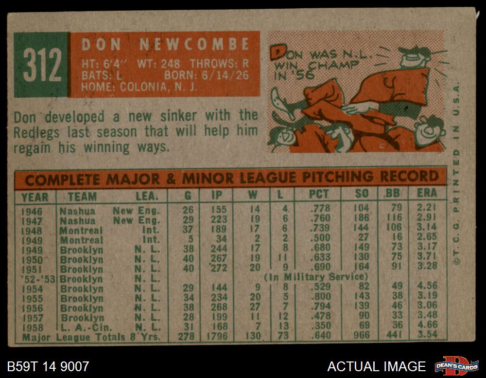 1959 Topps #312 Don Newcombe 3 - VG
