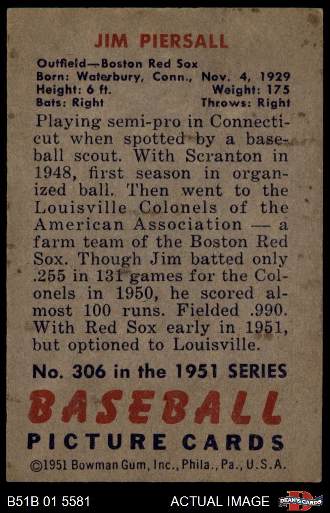 1951 Bowman #306 Jimmy Piersall 3 - VG