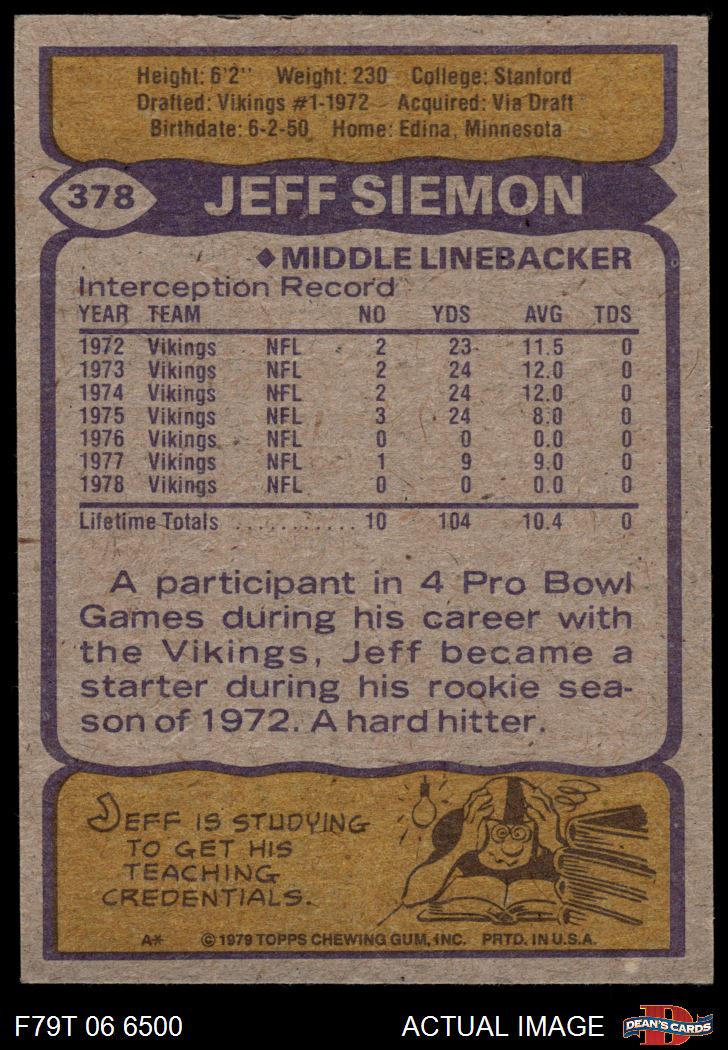 1979 Topps #378 Jeff Siemon 6.5 - EX/MT+