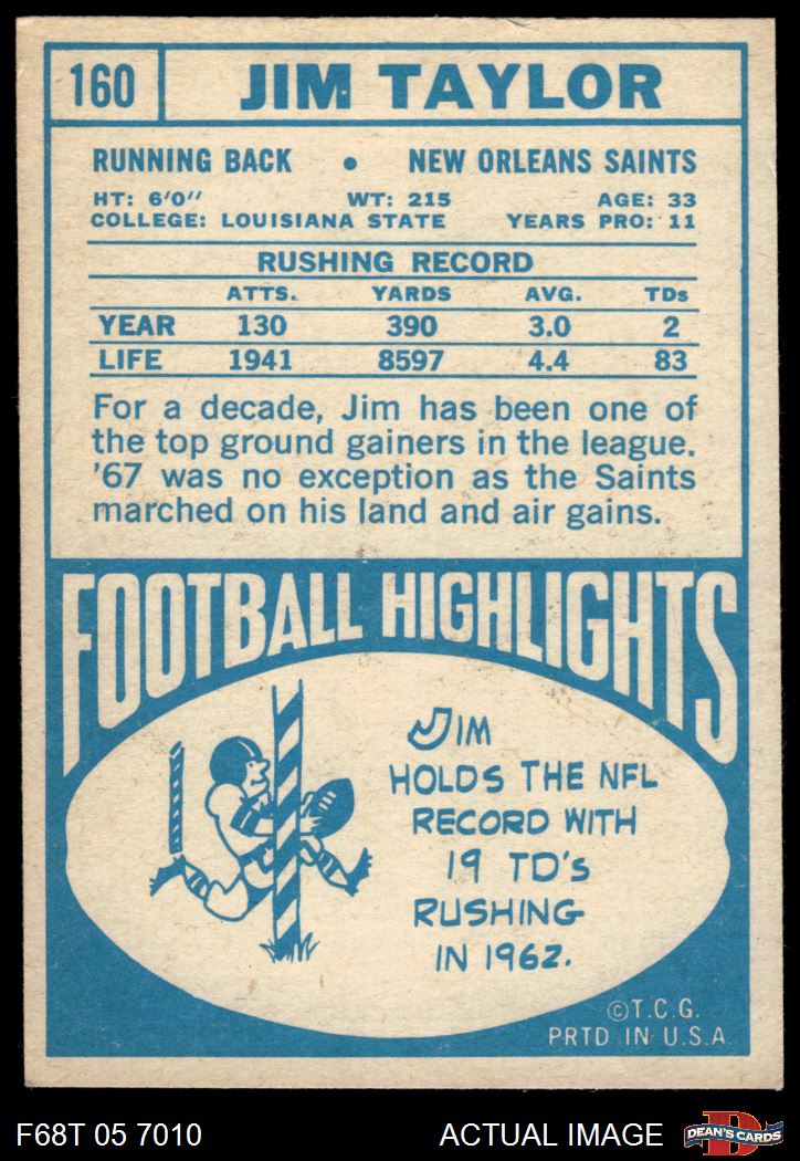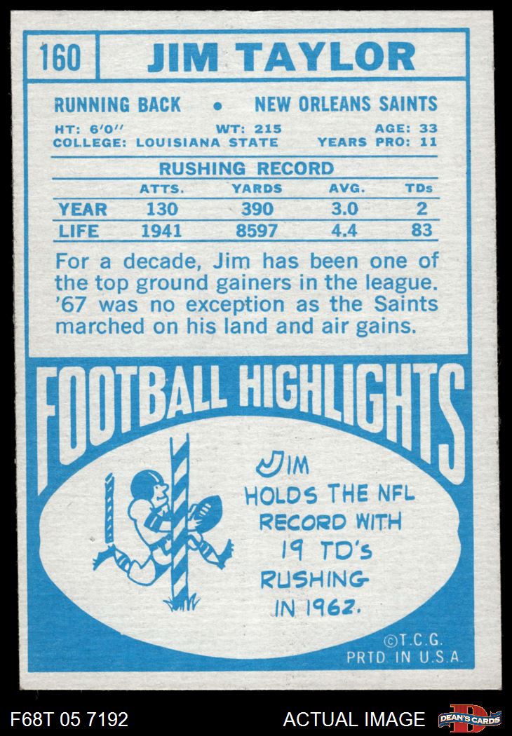 1968 Topps #160 Jim Taylor