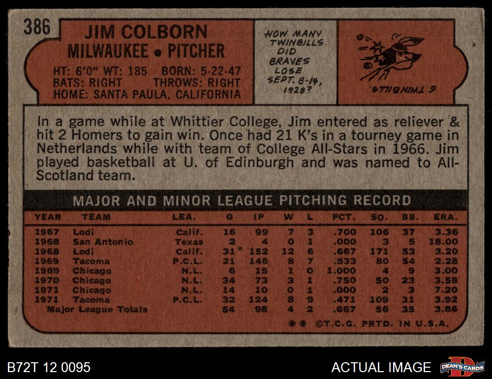 1972 Topps #386 Jim Colborn 3.5 - VG+