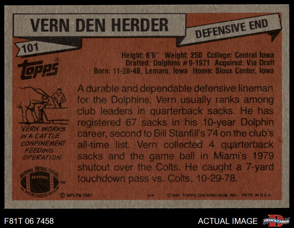 1981 Topps #101 Vern Den Herder 6.5 - EX/MT+