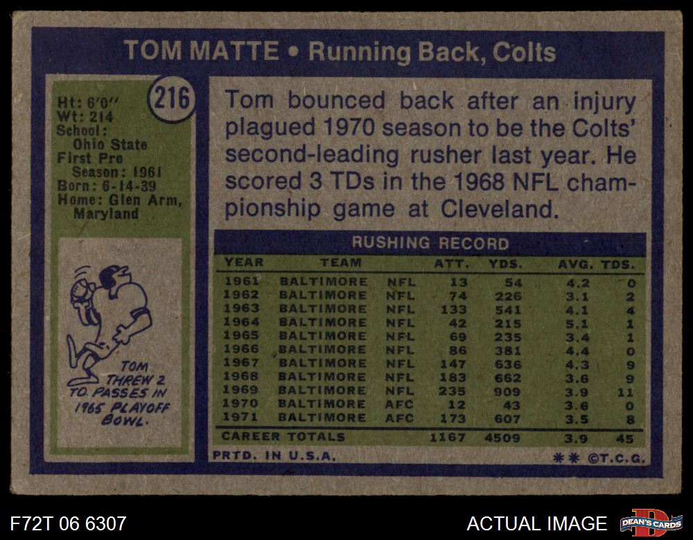 1972 Topps #216 Tom Matte Front Thumbnail