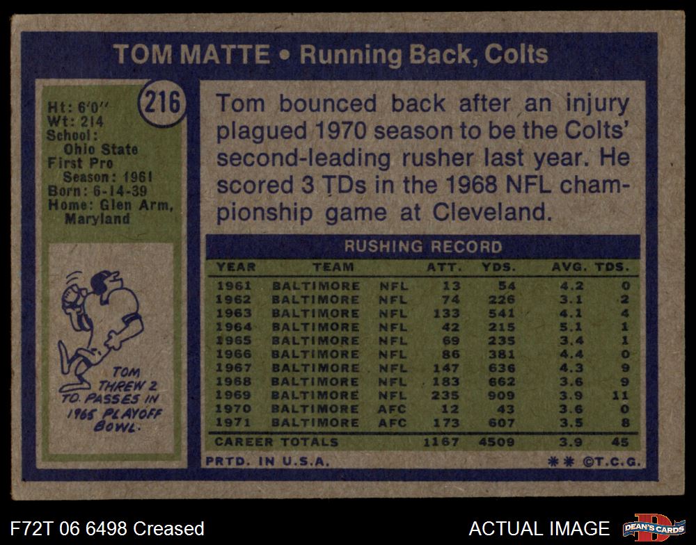 1972 Topps #216 Tom Matte 2 - GOOD