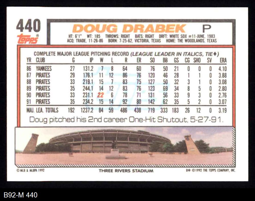 1992 Topps #440 Doug Drabek 8 - NM/MT