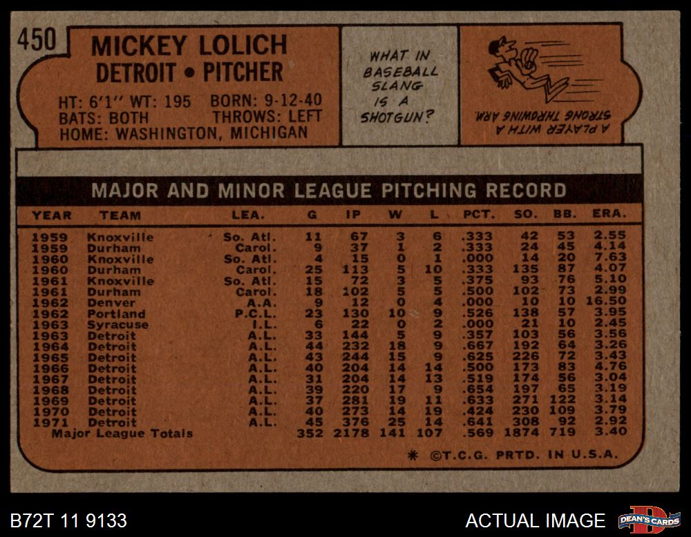 1972 Topps #450 Mickey Lolich 6 - EX/MT