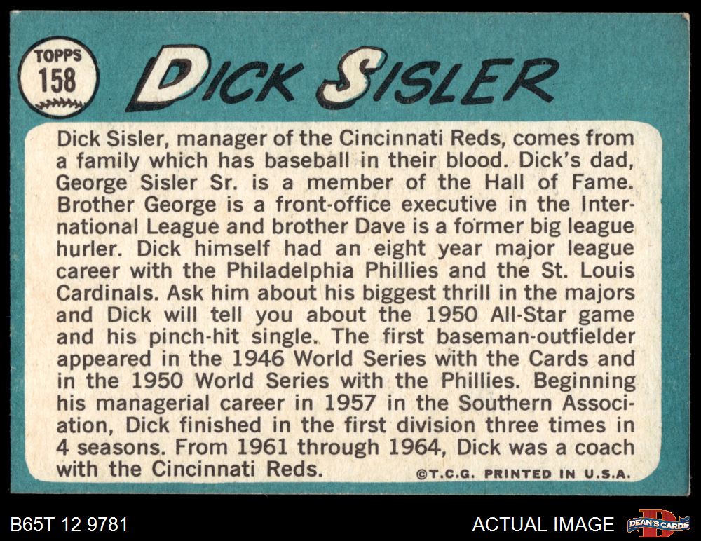 1965 Topps #158 Dick Sisler