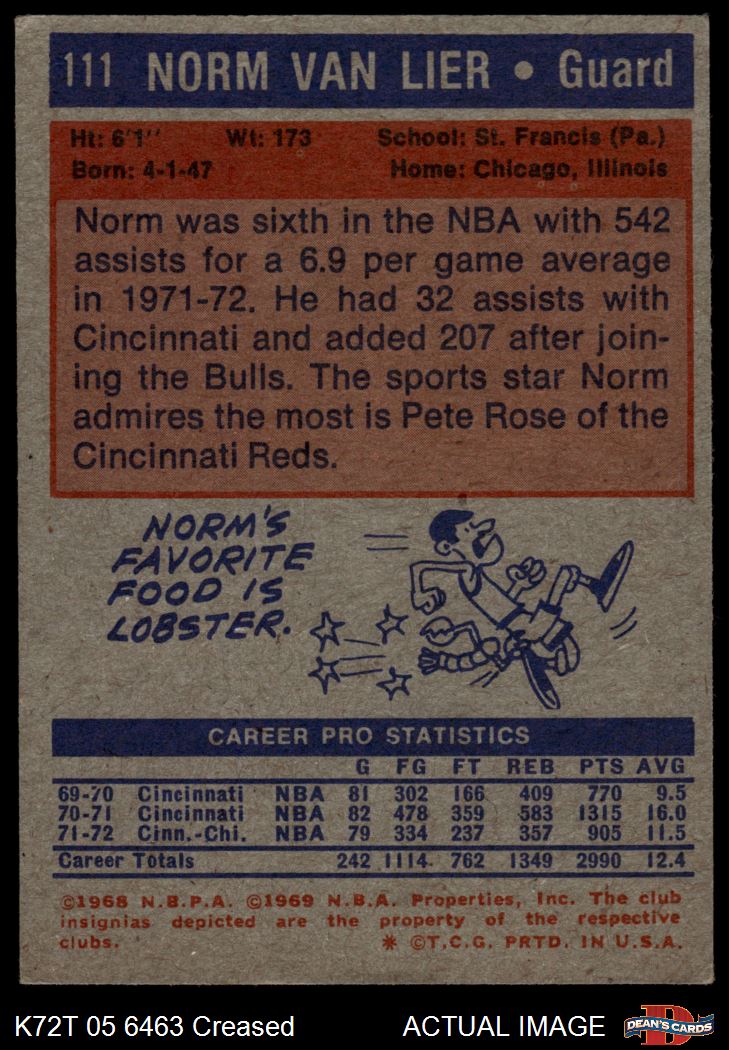 1972 Topps #111 Norm Van Lier 2 - GOOD