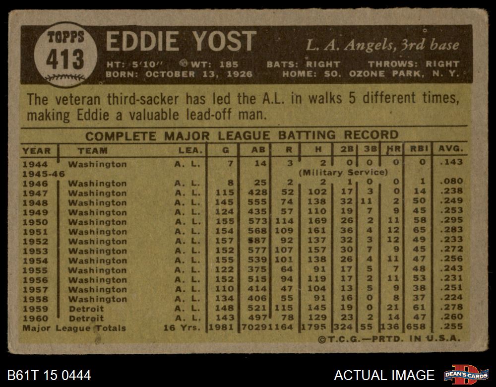 1961 Topps #413 Eddie Yost 2 - GOOD