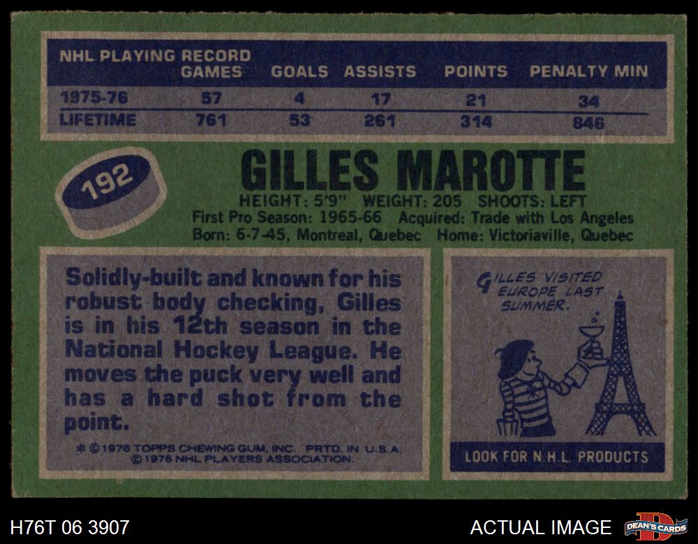 1976 Topps #192 Gilles Marotte