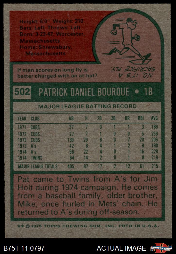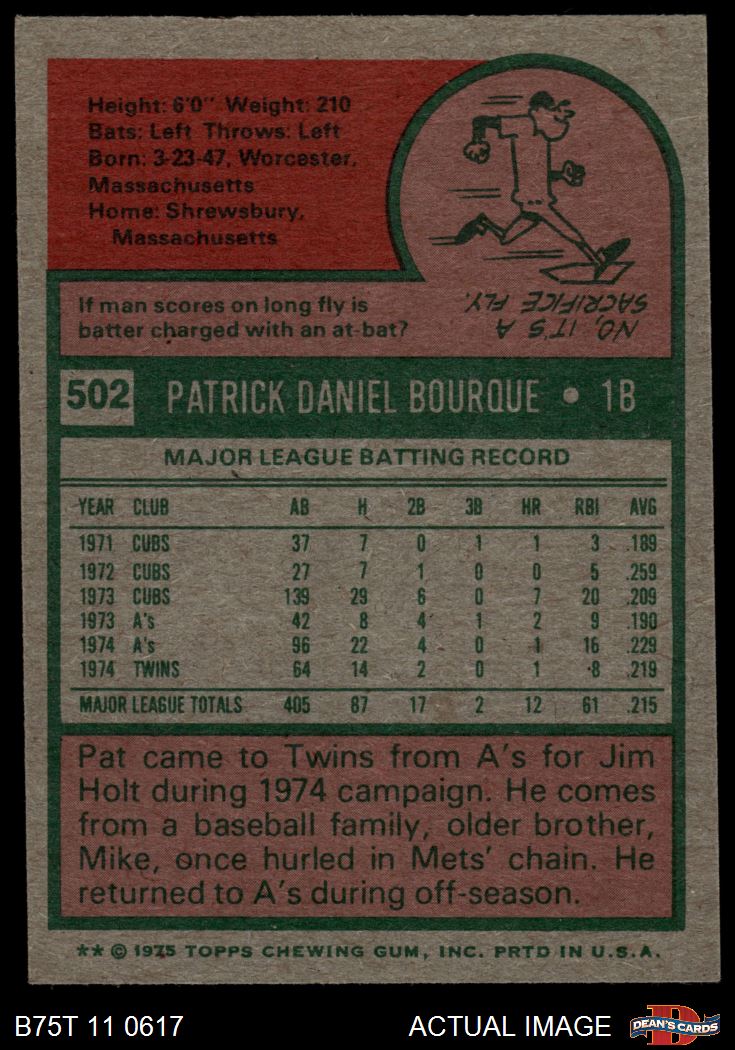 1975 Topps #502 Pat Bourque 7 - NM