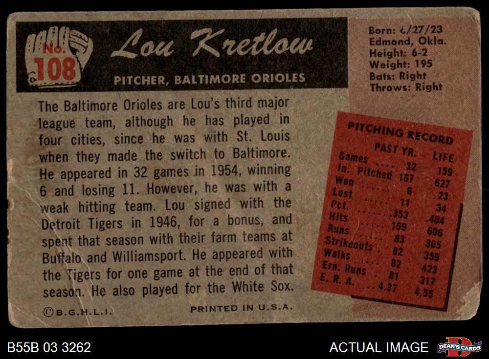 1955 Bowman #108 Lou Kretlow