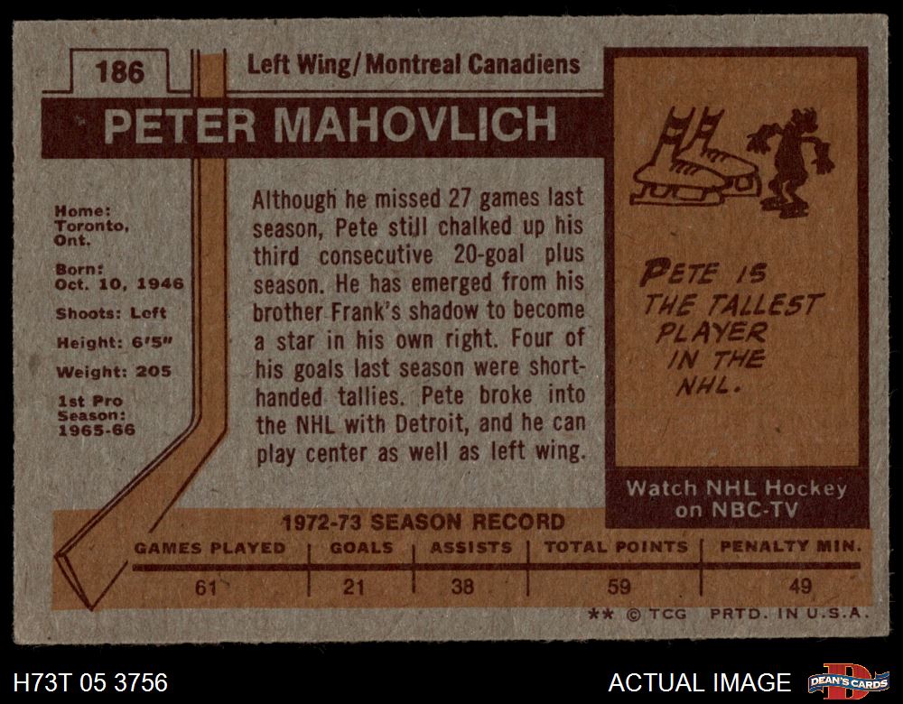 1973 Topps #186 Peter Mahovlich 5 - EX