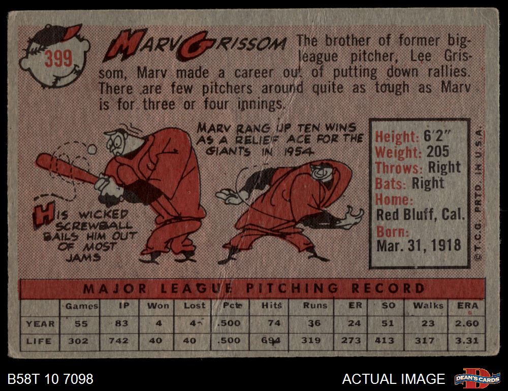 1958 Topps #399 Marv Grissom 1.5 - FAIR