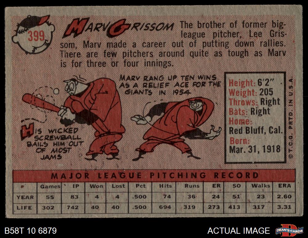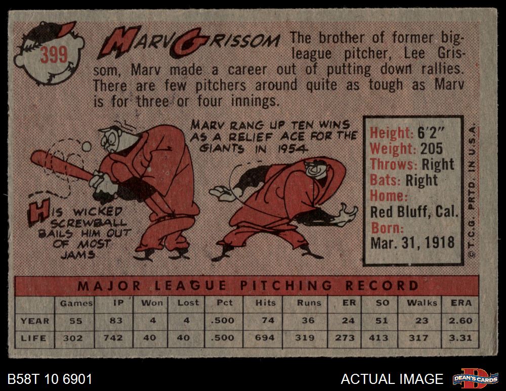 1958 Topps #399 Marv Grissom