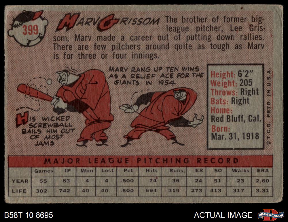 1958 Topps #399 Marv Grissom 2 - GOOD