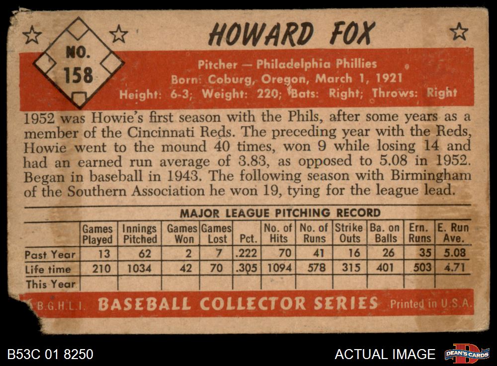 1953 Bowman #158 Howard Fox