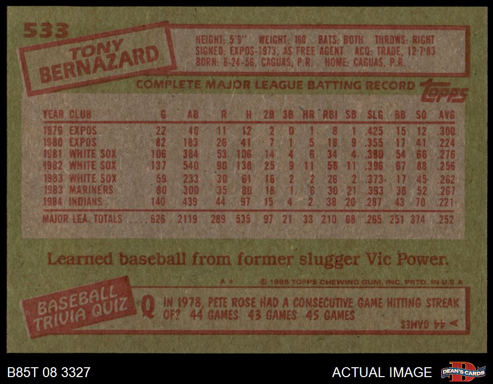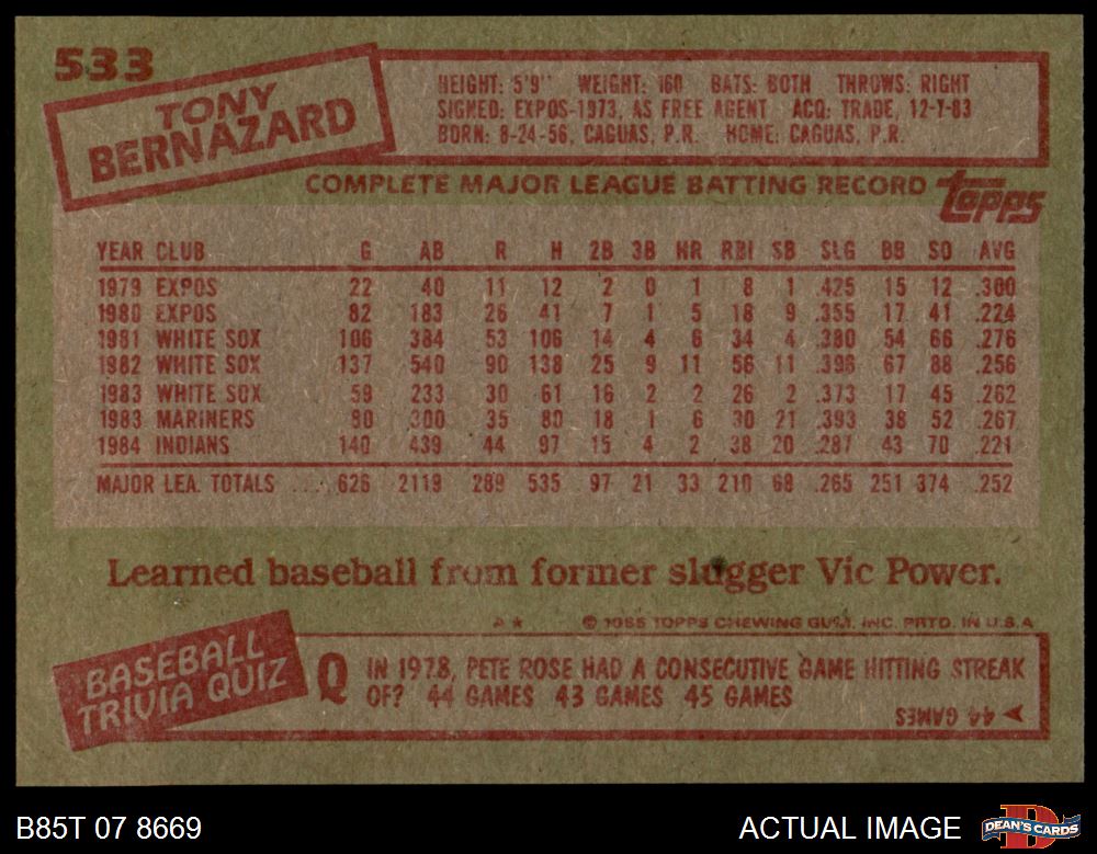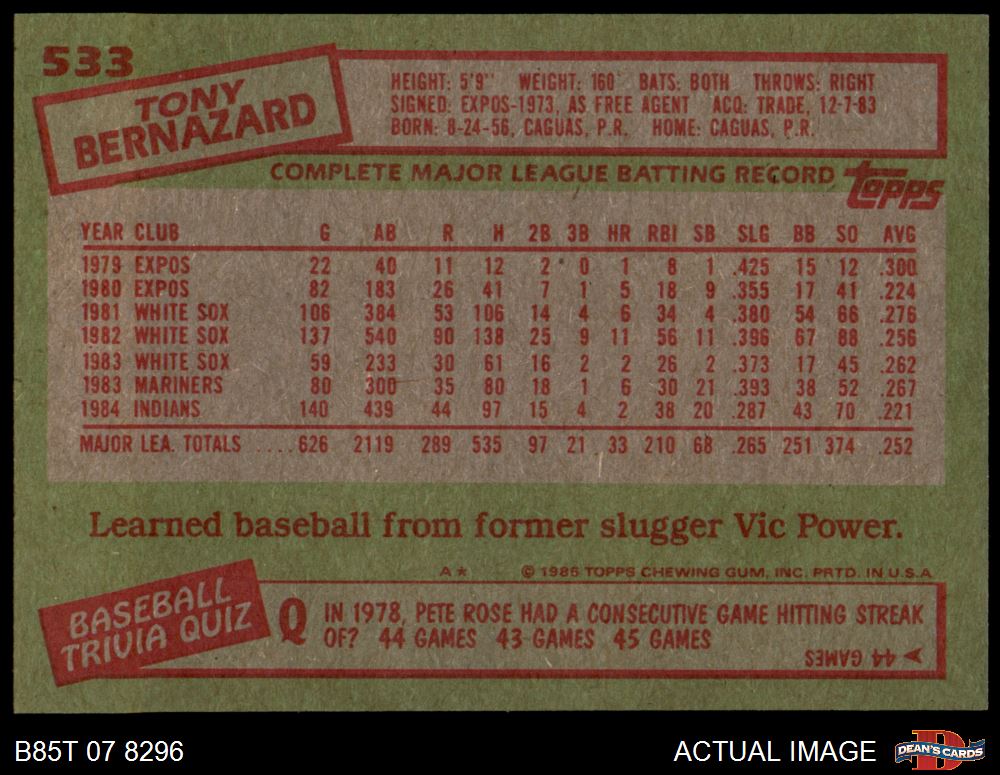 1985 Topps #533 Tony Bernazard 8.5 - NM/MT+
