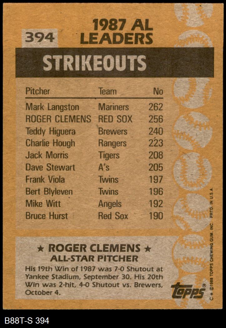 1988 Topps #394 - Roger Clemens All-Star 8 - NM/MT