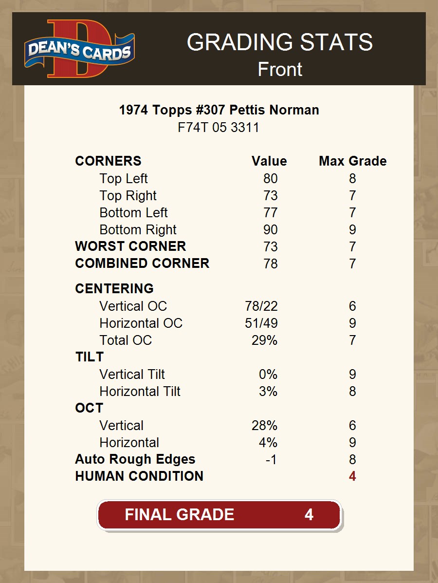 1974 Topps #307 Pettis Norman 4 - VG/EX
