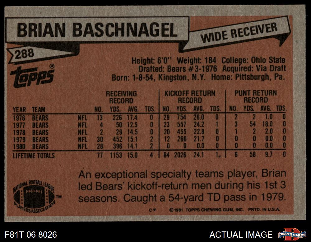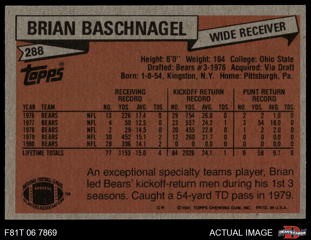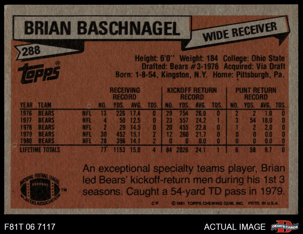 1981 Topps Football Cards (6,346 available)1981 Topps Bears (147 available)