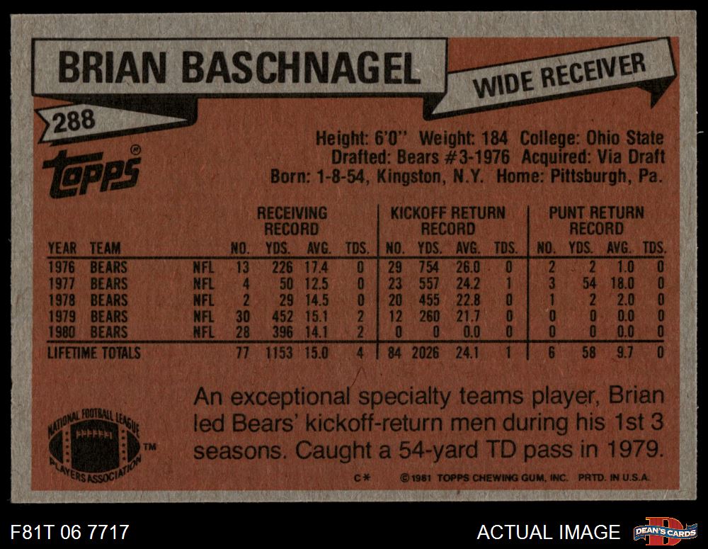 1981 Topps #288 Brian Baschnagel
