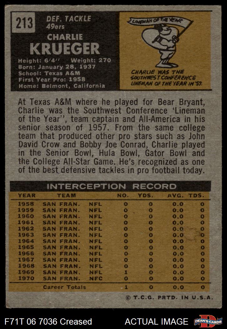 1971 Topps #213 Charlie Krueger Front Thumbnail