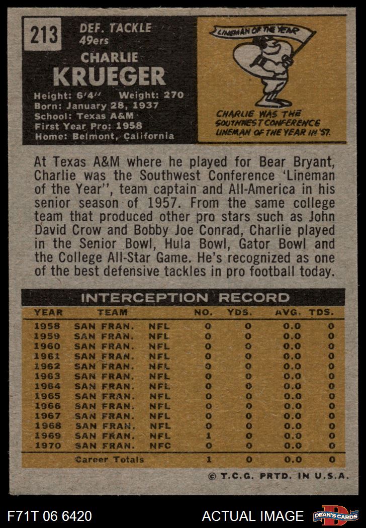 1971 Topps #213 Charlie Krueger 6 - EX/MT