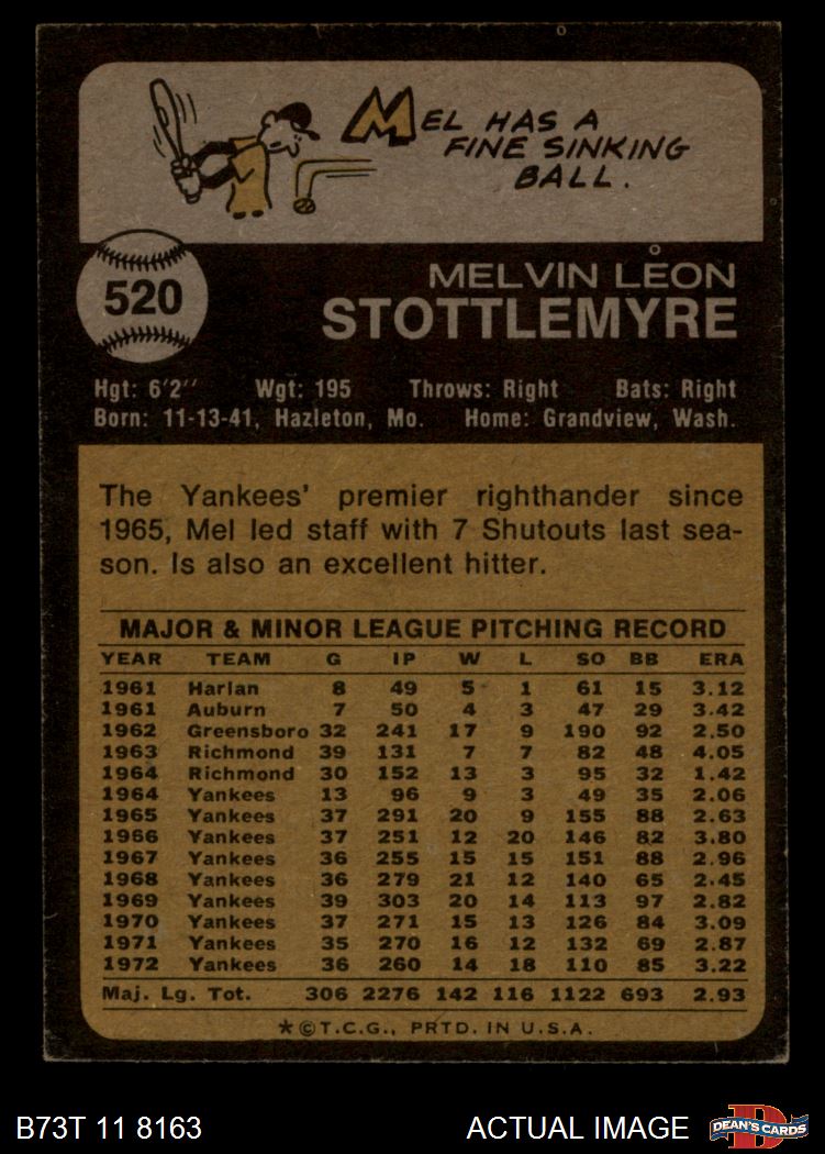 1973 Topps #520 Mel Stottlemyre