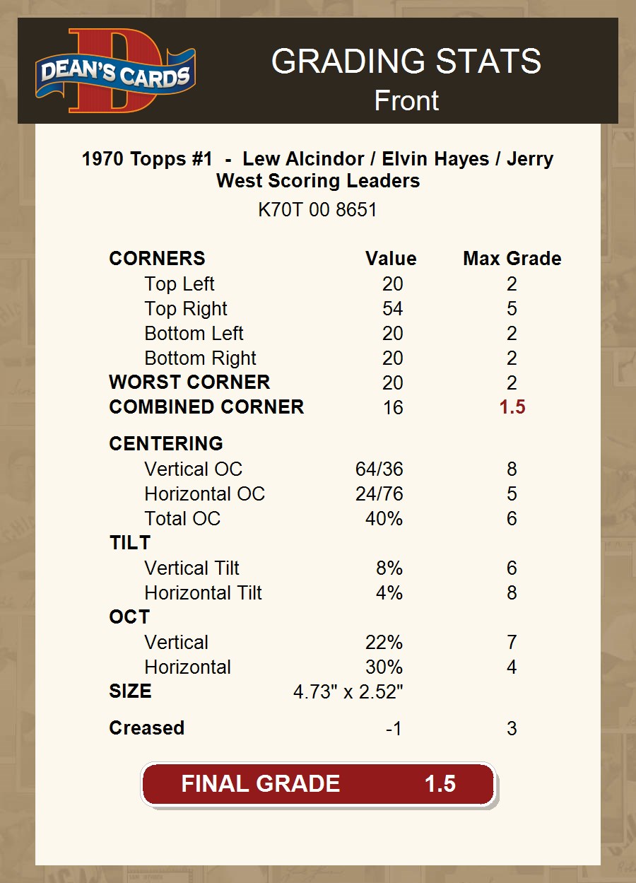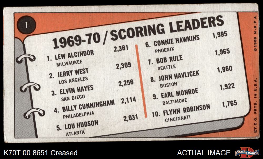 1970 Topps #1 - Lew Alcindor / Elvin Hayes / Jerry West Scoring Leaders 1.5 - FAIR