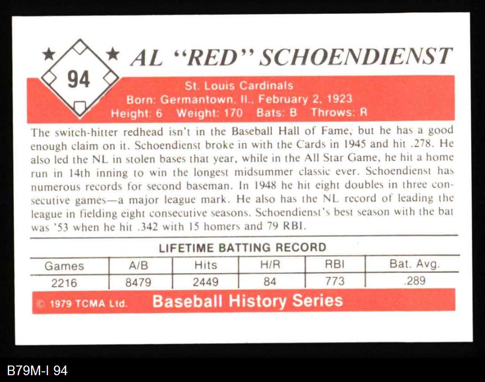 1979 TCMA The 1950's #94 Al Schoendienst