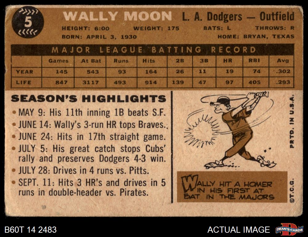 1960 Topps #5 Wally Moon 1 - POOR
