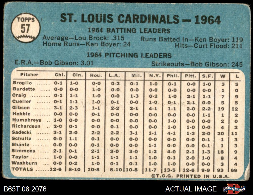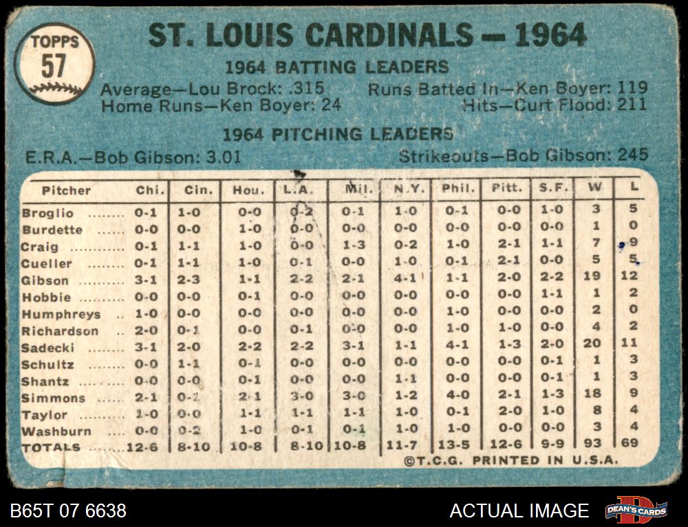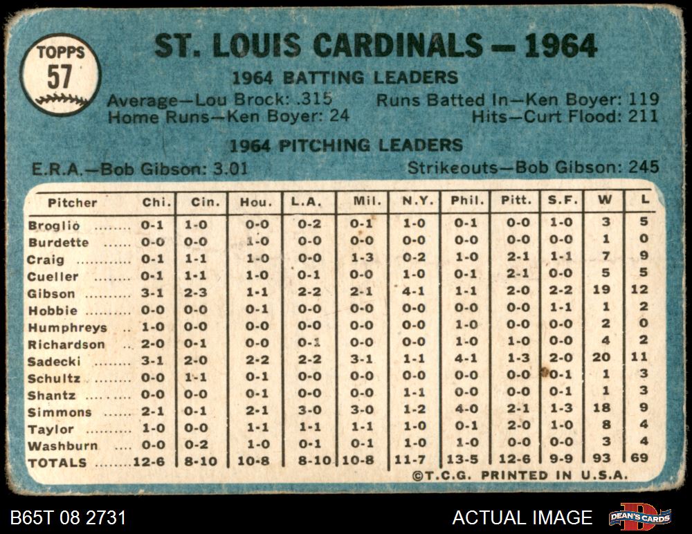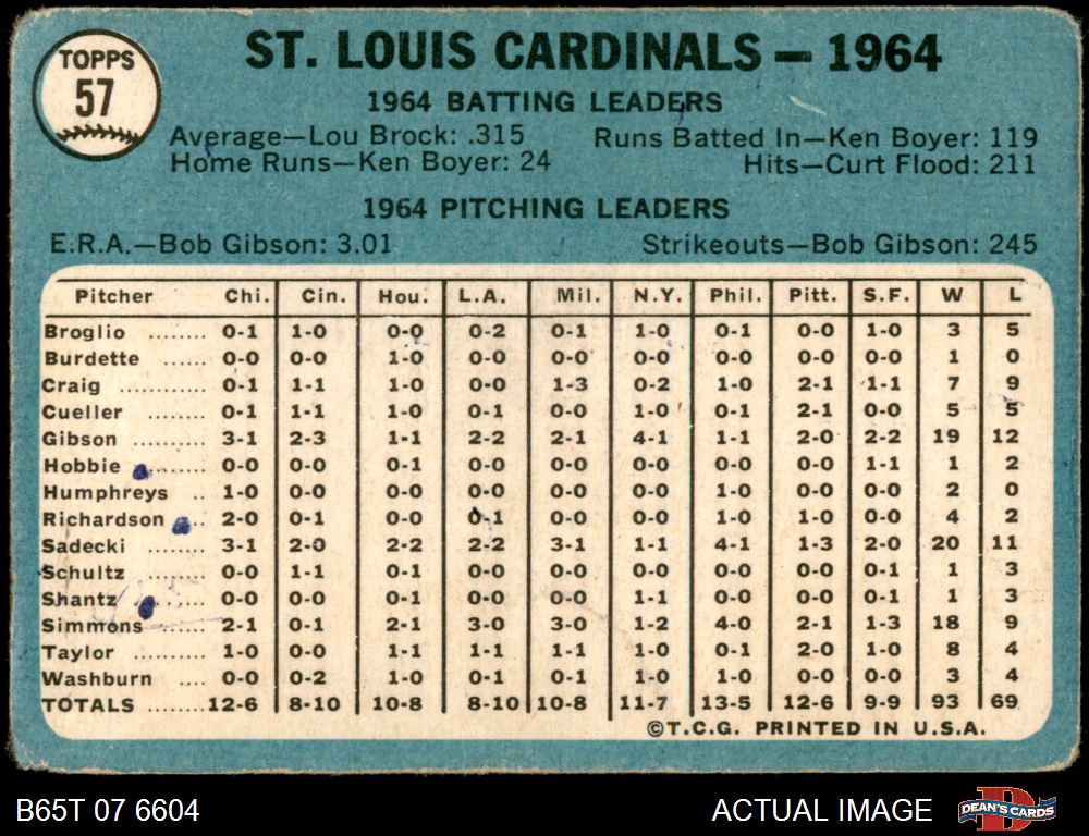1965 Topps #57 Cardinals Team AUTHENTIC