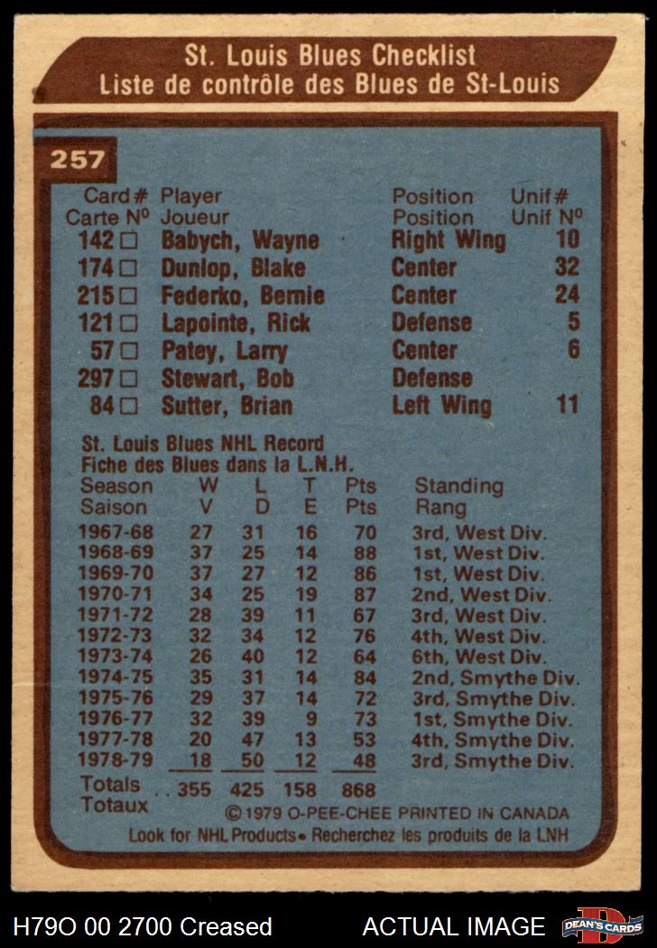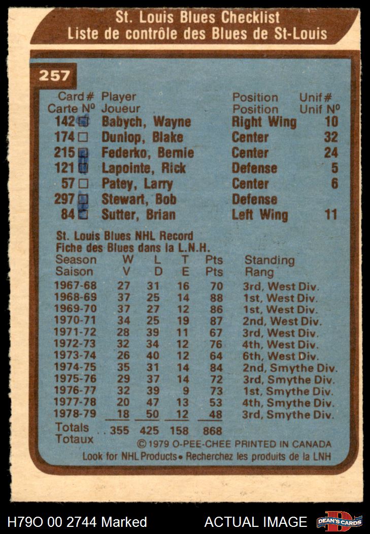 1979 O-Pee-Chee #257 Blues Team Checklist
