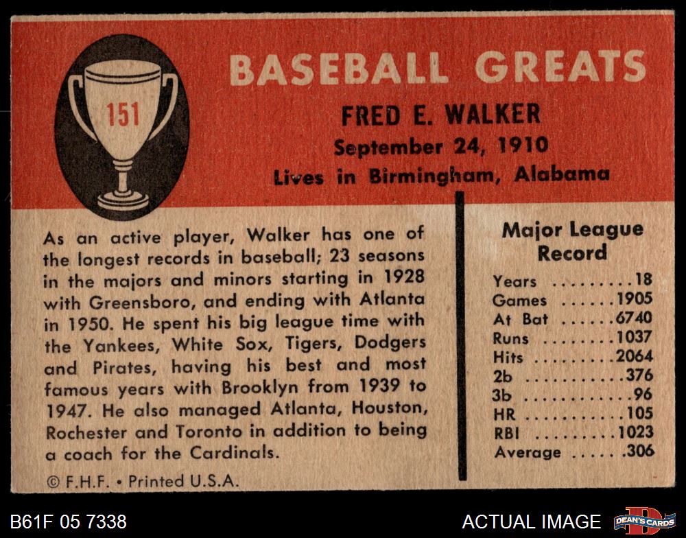 1961 Fleer #151 Dixie Walker 4 - VG/EX
