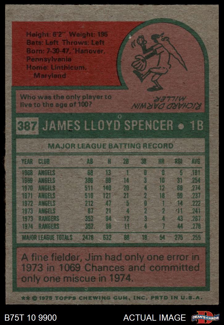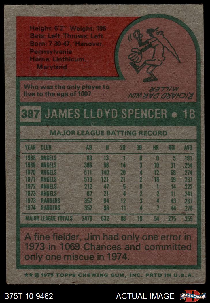1975 Topps #387 Jim Spencer 4 - VG/EX