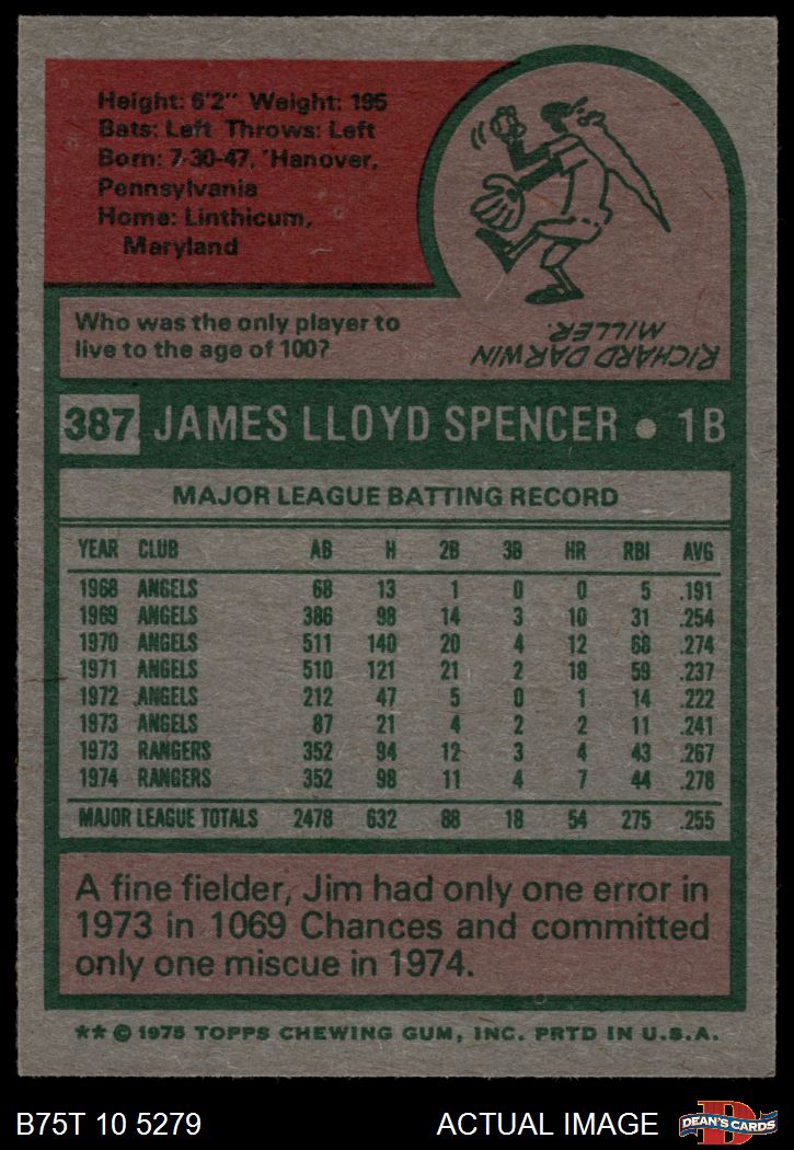 1975 Topps #387 Jim Spencer 6 - EX/MT
